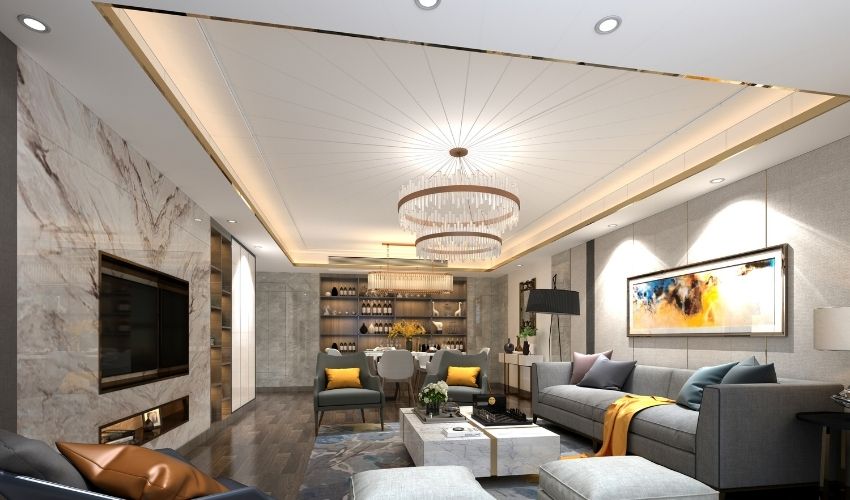 Step into “The Designer’s” Living Room False Ceiling Image Gallery and prepare to be captivated! Discover a mesmerizing collection of stunning designs specially curated for drawing rooms, living rooms, seating rooms, and family seating areas. Immerse yourself in the intricate artistry and craftsmanship of our false ceiling work.